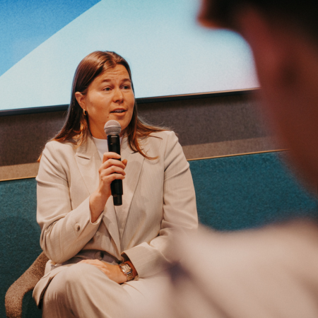 Na een korte pauze kregen de studenten de kans om rechtstreeks in gesprek te gaan met drie vrouwelijke leiders uit de sector tijdens een Q&A-panel: