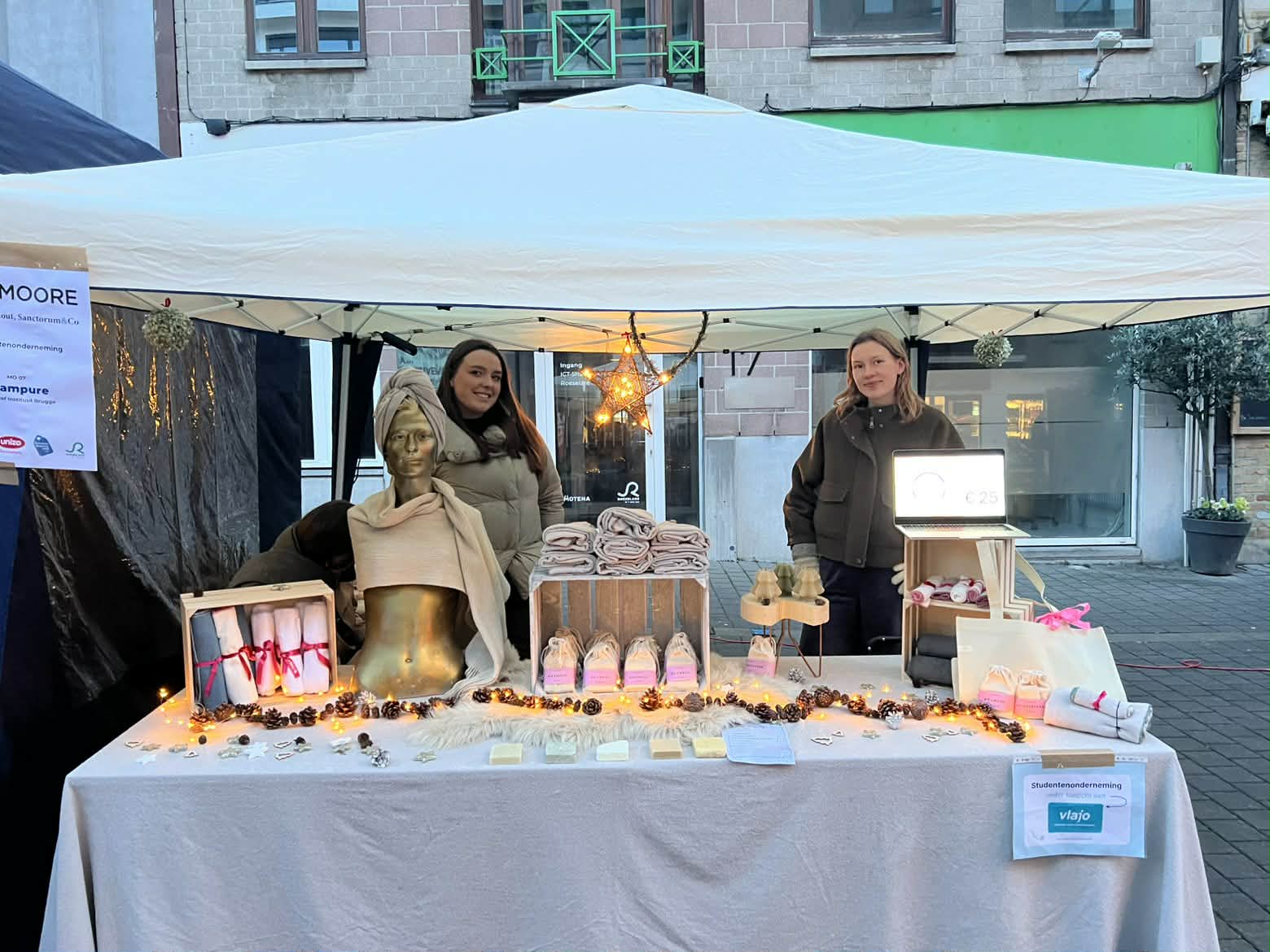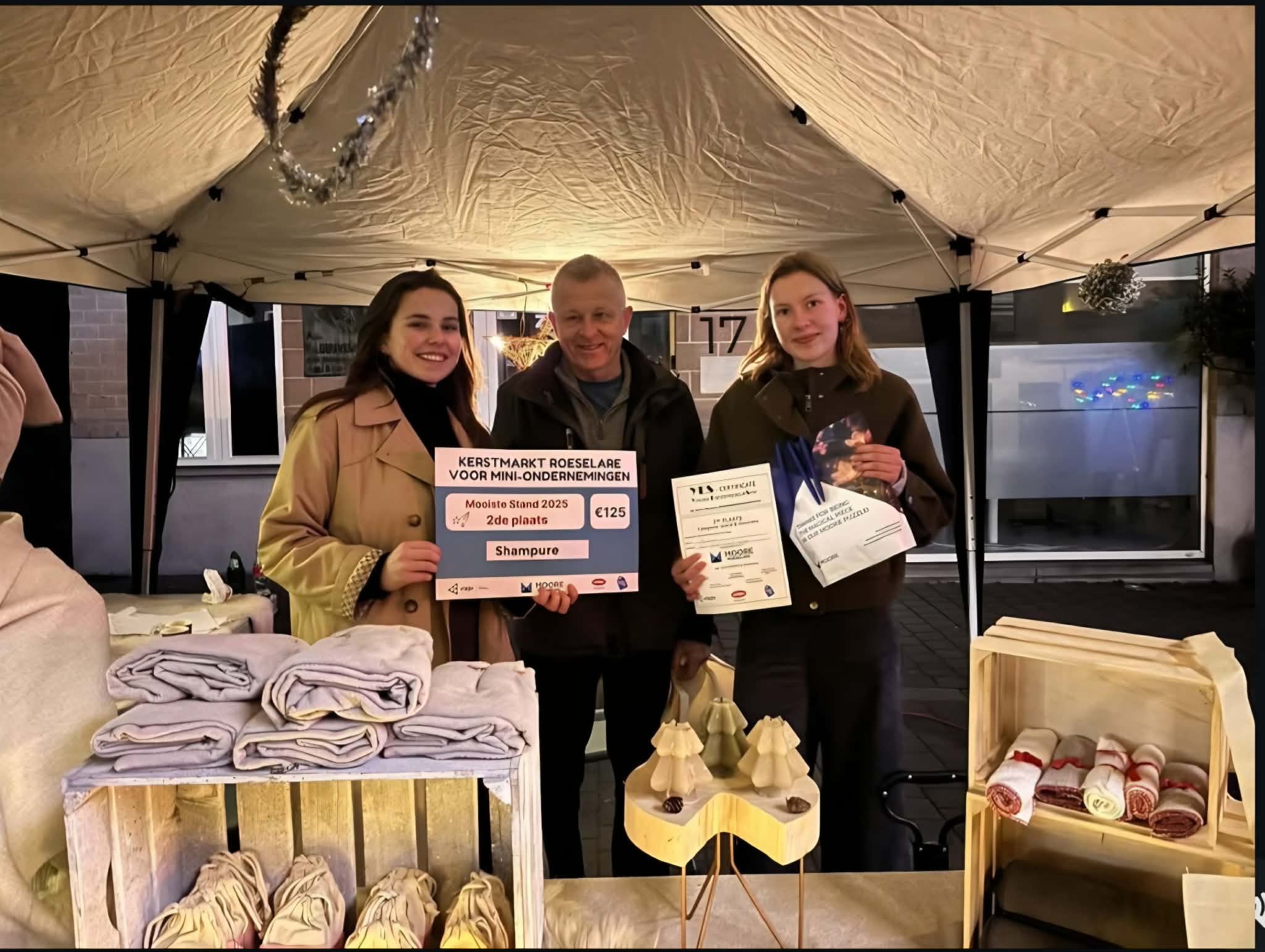 Op 21 december stonden wij met ons team op de kerstmarkt in Roeselare. Onze stand was volledig opgebouwd volgens het kerstthema en onze huisstijl. Het harde werk van het team werd beloond: we wonnen de prijs voor mooiste stand! Super tof dat de jury zag dat we trouw blijven aan onze huisstijl, maar er toch een creatieve en feestelijke draai aan hebben gegeven. Echt een mooie erkenning voor ons team!
