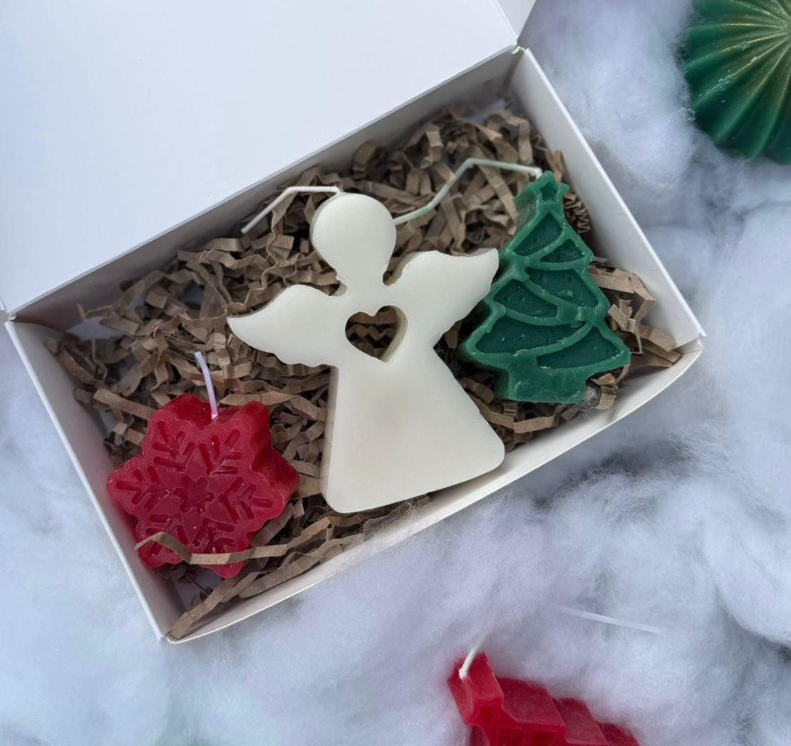 De laatste, schattigste box - een elegant set met drie feestelijke kaarsen: