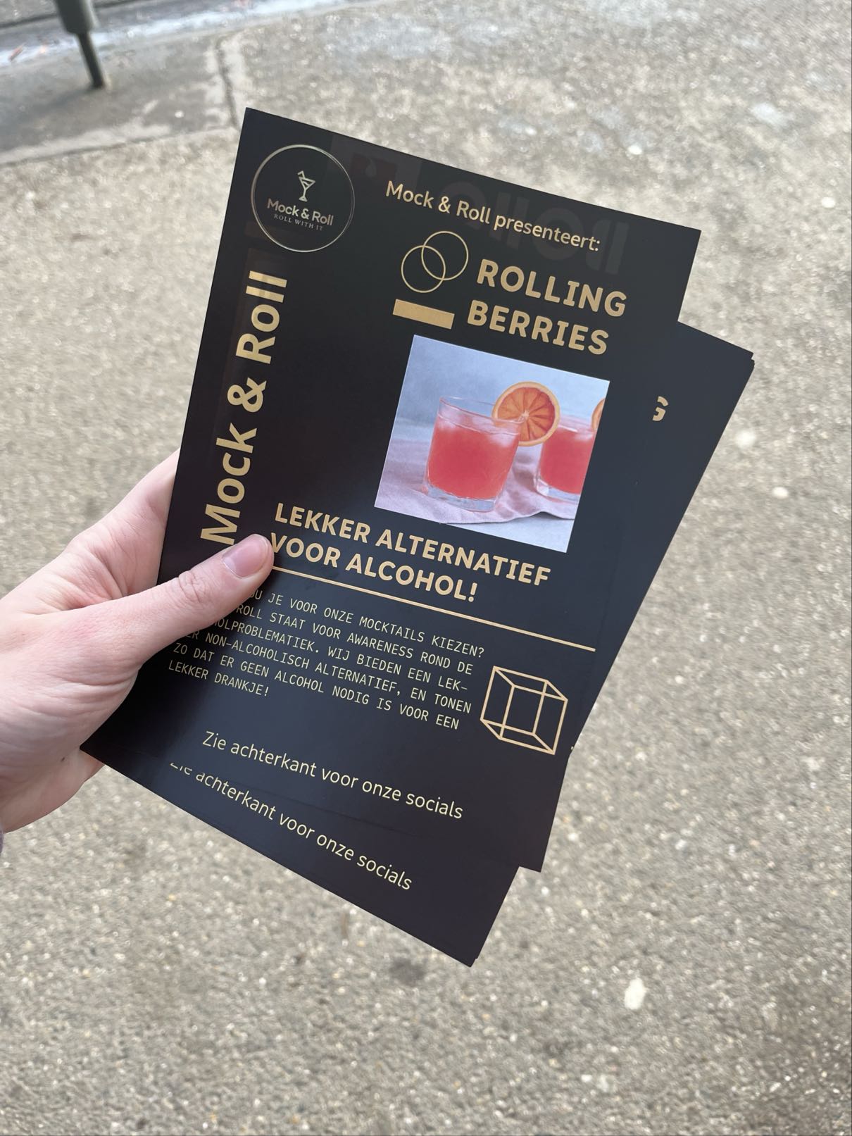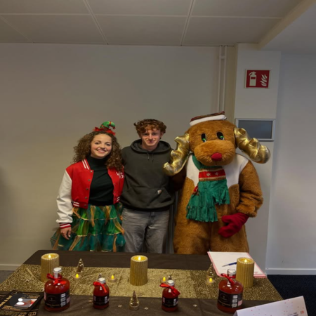 Tijdens het oudercontact deelden we flyers uit zodat mensen wisten wat en wie we waren. Hiermee spoorden we de mensen aan om langs te gaan bij onze stand.