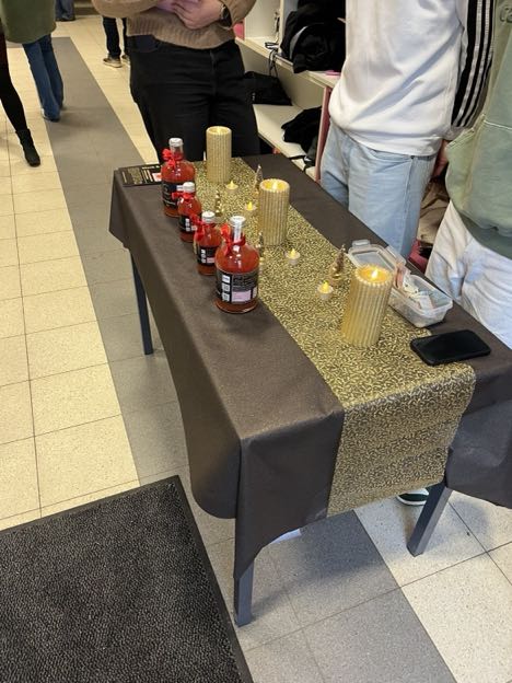 Op 19 december hadden we de eer om op onze school een verkoop te houden tijdens het oudercontact. We hadden op voorhand al alles genoteerd wat we nodig hadden en waren er helemaal klaar voor. Toen we op school aankwamen hebben we uitgeladen en onze tafel opgezet. We hadden kerstversiering voorzien om al wat in de kerstsfeer te komen en een krijt bord met de informatie zodat we klanten konden aantrekken.
