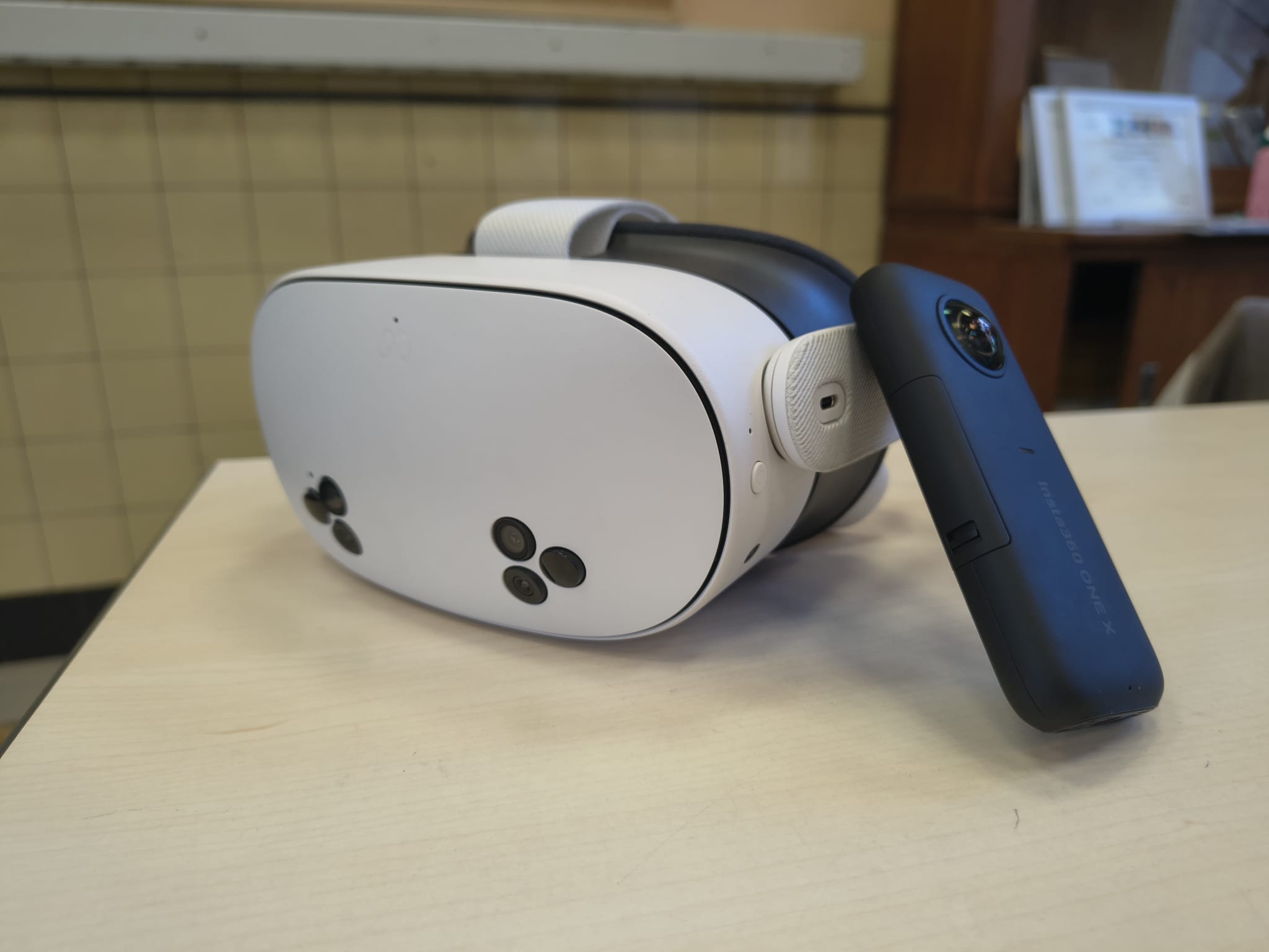 Hier zie je ons product in actie. Wanneer de gebruiker de VR-bril opzet, zit die comfortabel neer. Vanuit die positie kan hij of zij volledig 360° rondkijken en zich echt in de video verplaatsen.