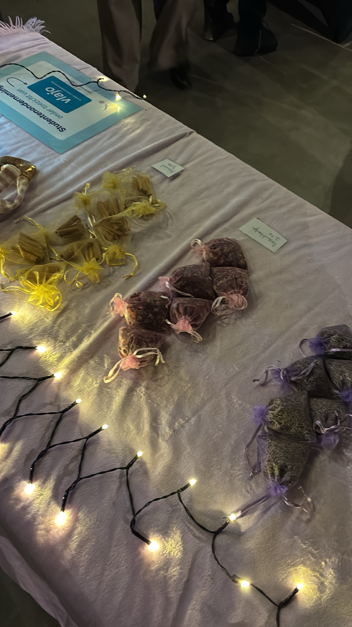Op onze tweede kerstmarkt besloten we het een stapje verder te brengen: we zijn gaan flyeren en ons verhaal te vertellen. En dat werkte! Mensen van andere stands begonnen ons te volgen en te steunen. Ze waren geïnteresseerd in wie we zijn: studenten met een mini-onderneming die iets kleins en betaalbaars aanbieden. Hoe vaker we ons verhaal deelden, hoe meer mensen enthousiast raakten en iets bij ons wilden kopen 🛍️.