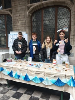 Op 15 november stonden we voor het eerst op de markt van Mechelen. We hadden op dat moment nog geen definitief product, maar wel ons prototype en ons Business Model Canvas (BMC). Het was spannend, want alles was nieuw: mensen aanspreken, ons idee uitleggen en feedback krijgen van voorbijgangers. Toch merkten we al snel dat er veel interesse was in ons concept. Mensen waren enthousiast over het idee van een educatief spel rond geld voor kinderen van het vijfde en zesde leerjaar. Die dag werd nog specialer toen we de eerste prijs wonnen voor Beste Commerciële Mini. Dat gaf ons enorm veel motivatie en bevestigde dat we goed bezig waren.