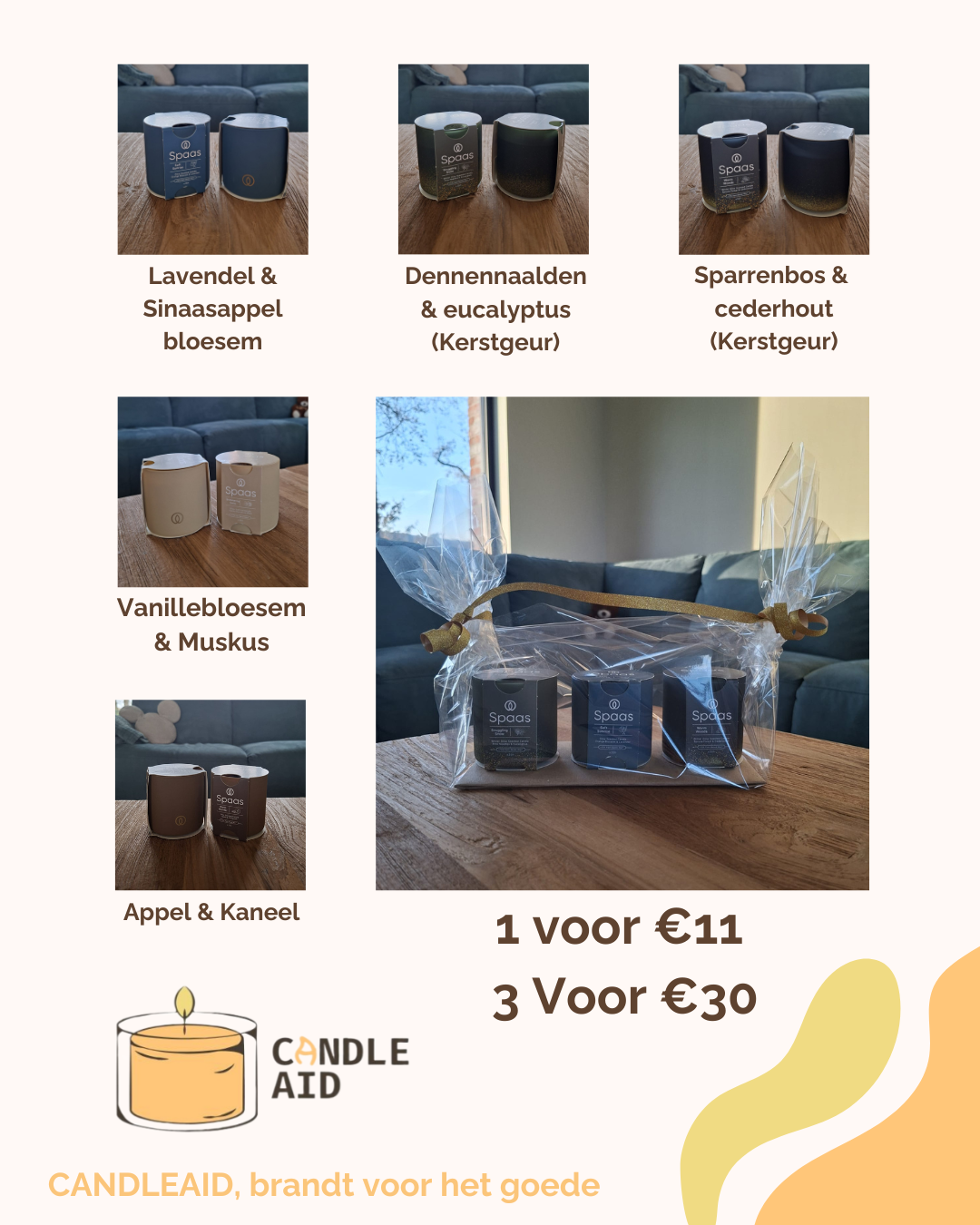 Hallo wij zijn CANDLEAID, en verkopen geurkaarsen. Door een kaarsje te branden, steunen wij kinderen die in armoede leven. Zeker in de koude wintermaanden kan een klein vlammetje niet alleen warmte geven, maar ook hoop, licht en een beetje geluk. Samen kunnen we hun wereld een stukje warmer maken.