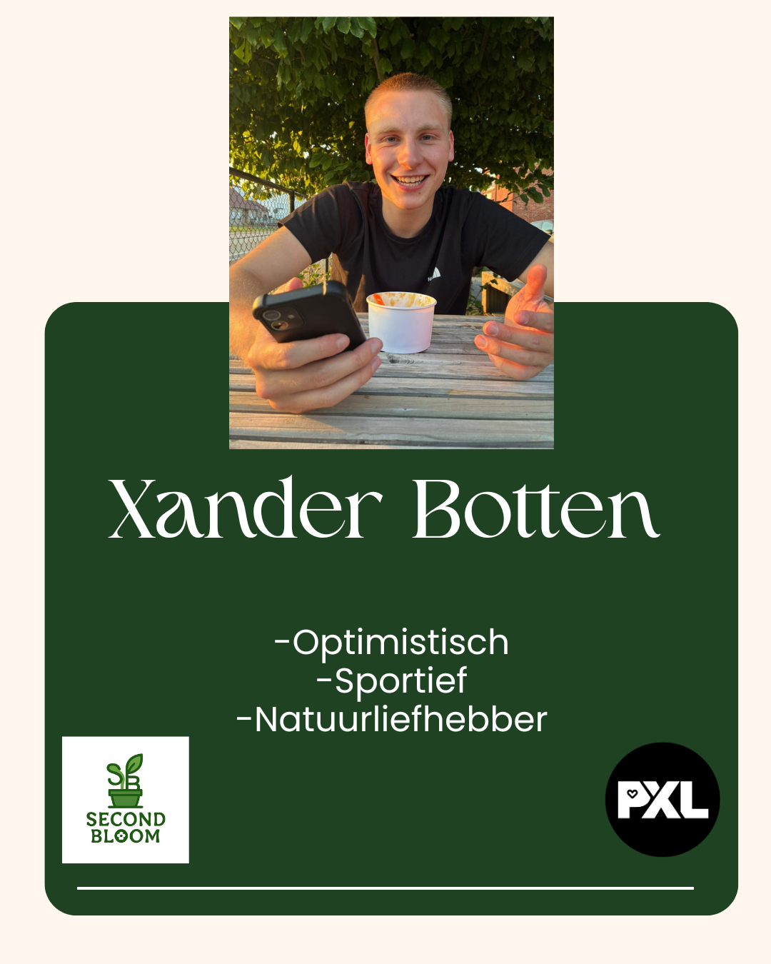 Second Bloom is een duurzaam en circulair plantenconcept dat zich richt op het redden en herwaarderen van kamerplanten die anders zouden worden weggegooid. Veel planten belanden in de afvalstroom omdat ze er niet meer perfect uitzien of extra verzorging nodig hebben. Second Bloom adopteert deze planten, herstelt ze professioneel en geeft ze een tweede leven door ze opnieuw verkoopklaar te maken. Elke plant wordt gecontroleerd, verzorgd en verpot in een zelfwaterende bloempot, aangevuld met duidelijke en toegankelijke onderhoudstips voor de klant